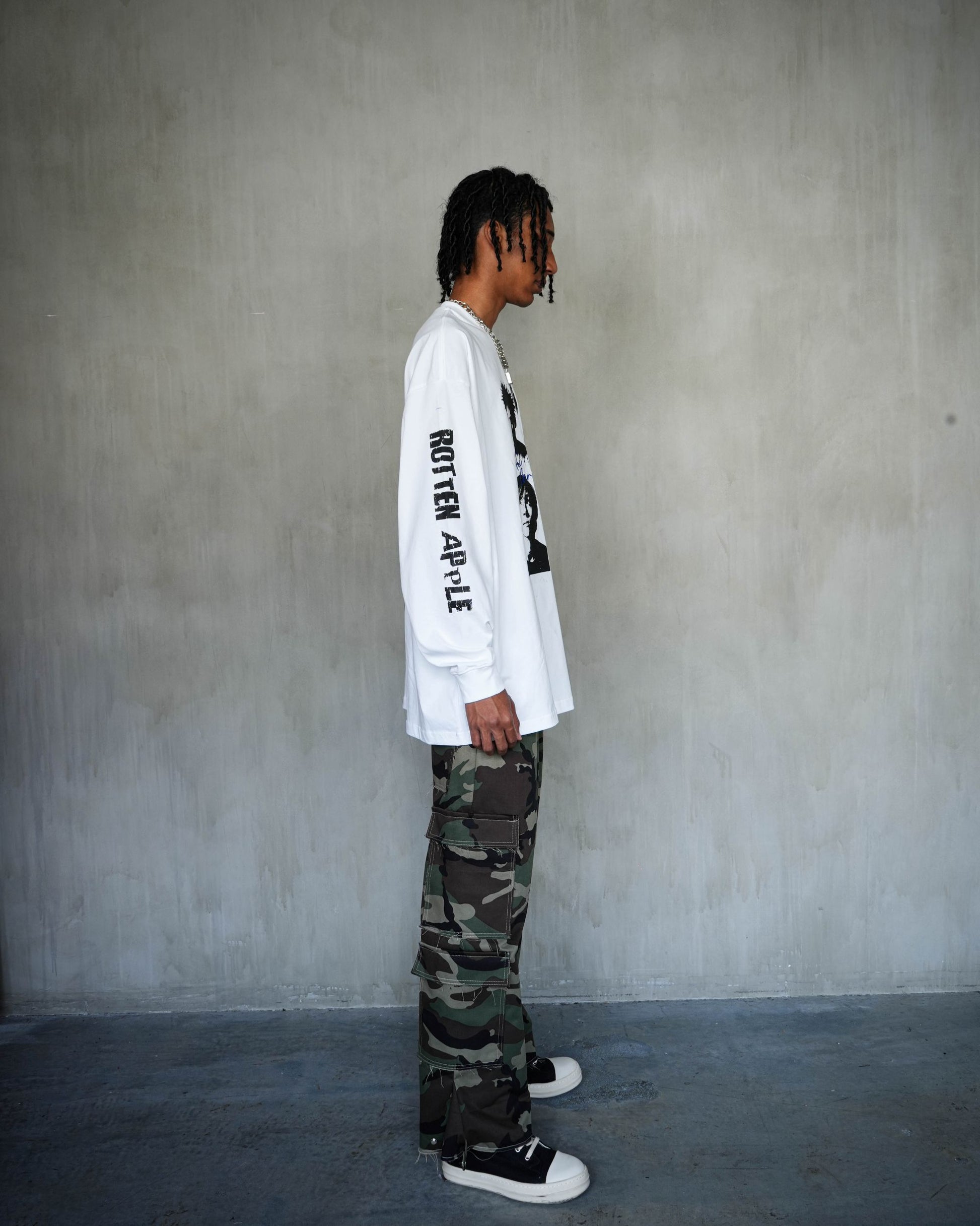 -ORIGINAL TAG -SILK SCREEN [ COLOR ] : ホワイト[ SIZE ] : 【 SIZE① / 肩幅:60cm / 身幅:62cm / 袖丈:58cm /着丈:74cm 】【 SIZE② / 肩幅:62cm / 身幅:65cm / 袖幅:60cm / 着丈:77cm 】【 MATERIA 】 : COTTON 100% 【 MADE IN JAPAN 】1点1点加工しておりますので、同じものは2つとなく、個体差がございます。~ご購入前に【About】を必ずお読み下さい~
