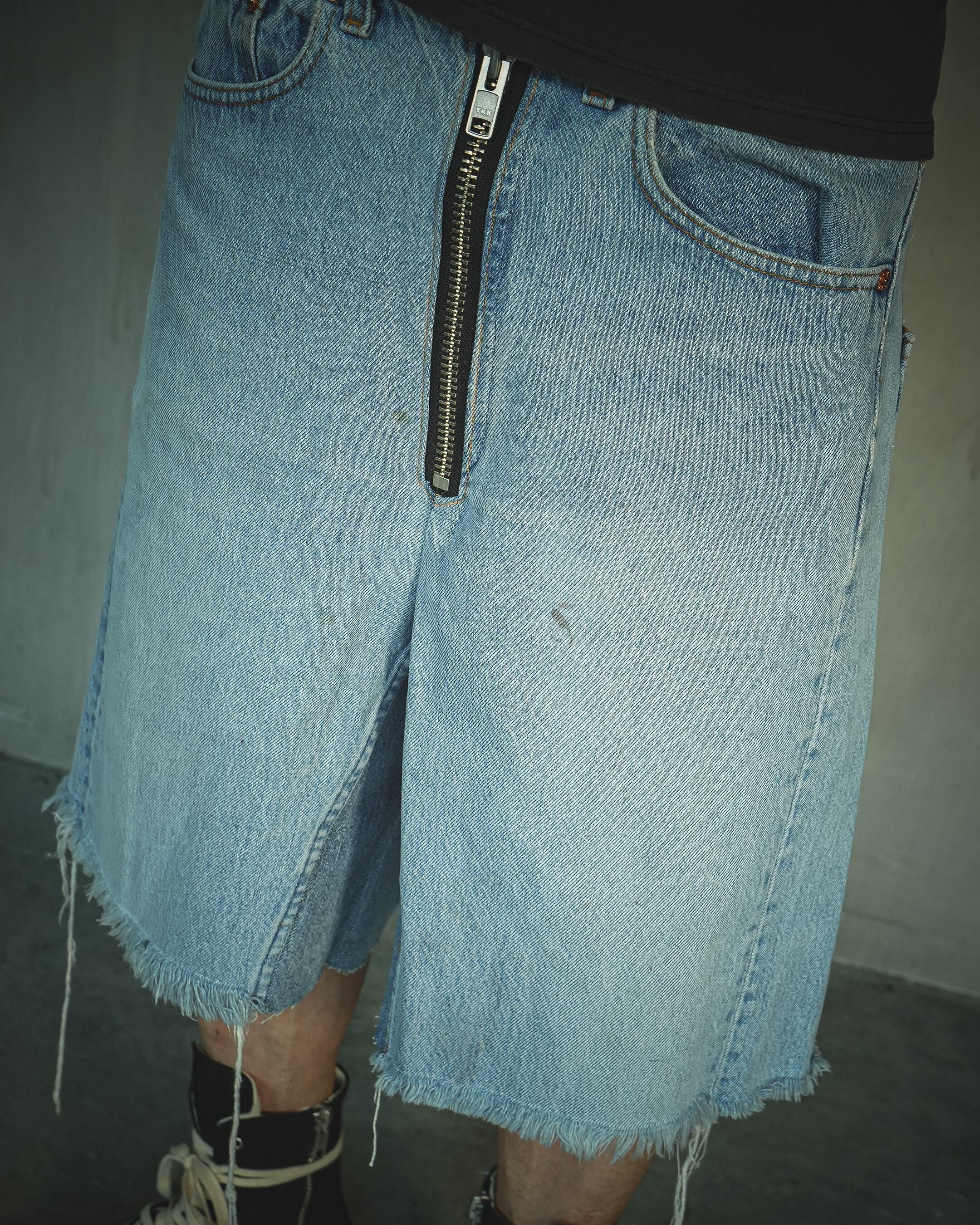 ・フロントは特注のYKKジッパーを取り付けバックポケットは取り外してオリジナルの刺繍。
